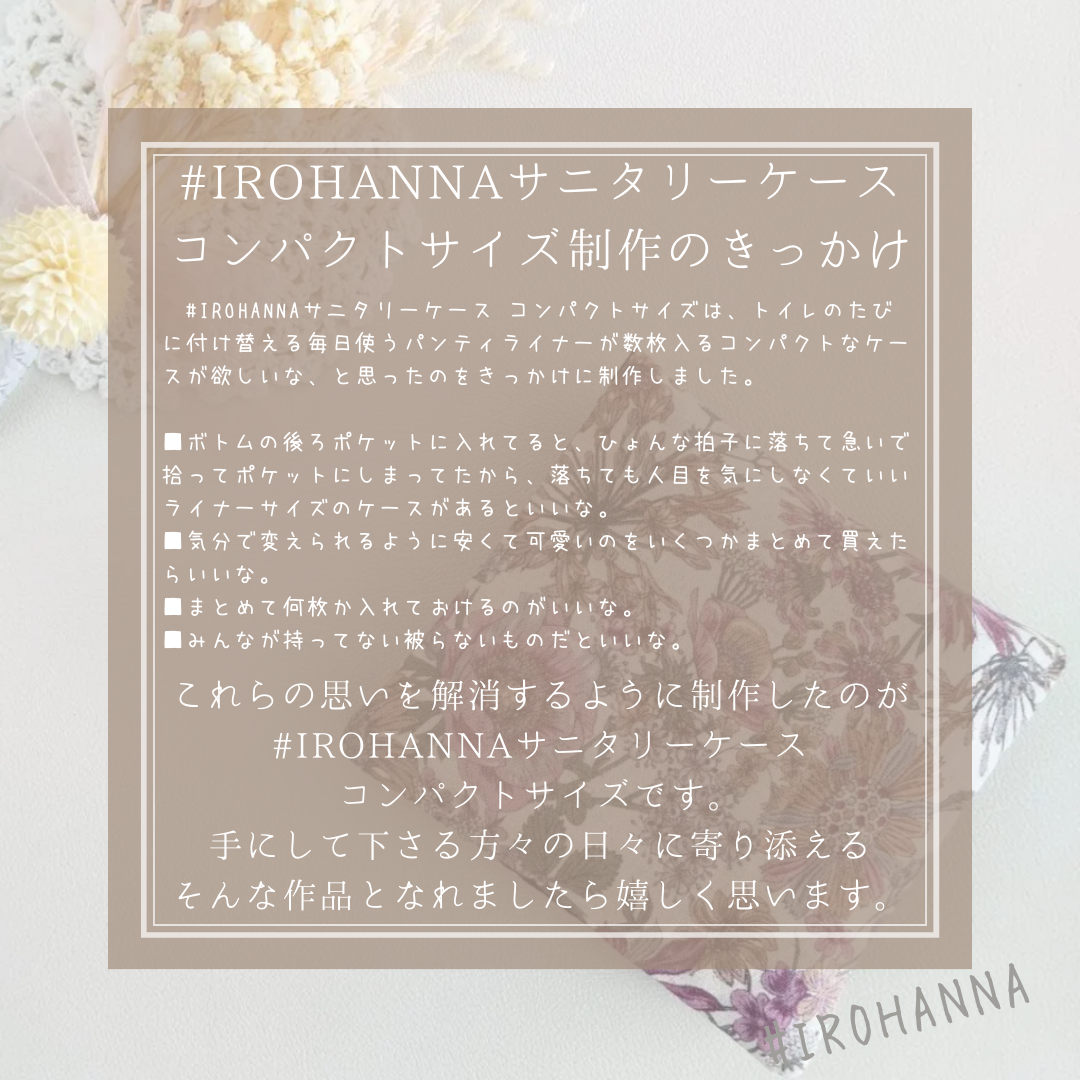 IROHANNAハンドメイドの売れ筋作品「コンパクトサニタリーケース」10㎝×10㎝の、ポケットサイズのサニタリーケースは携帯に便利なアイテムですIROHANNAのコンパクトサニタリーケースはお子様向けのデザインもご用...